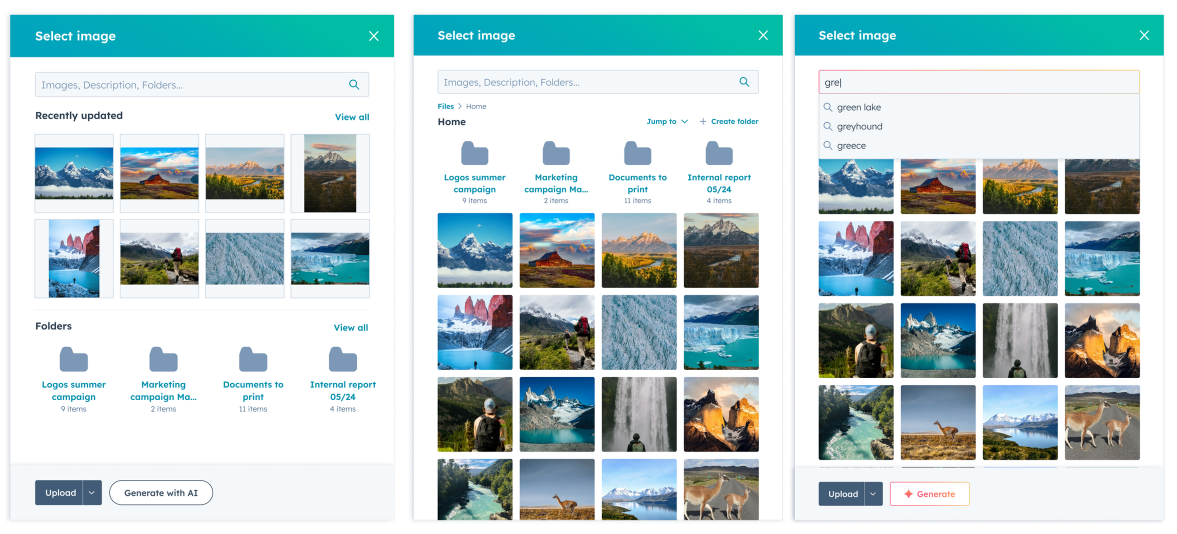 The File Picker (used across multiple tools like CMS, CRM, and Email) relied on literal name-based search. The workaround users did was simply to upload the same file multiple times instead of trying to find the original. This behavior created tens of thousands of duplicates, fragmented storage, and wasted time across teams.